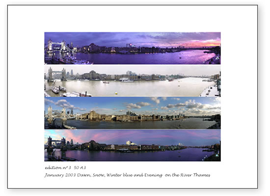 180°view of Tower Bridge northeast to Canary Wharf in the east and Greenwich in the southeast about dawn 3 January 2003