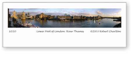 180°view of Tower Bridge northeast to Canary Wharf in the east