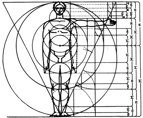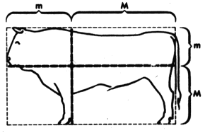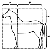 Artists of all ages have used the Golden Section quite instinctively, as did the people in the experiment on P 2 (Lines) & P 3 (Rectangles) The proportion also appears in the human body and many living things. In the diagrams on this page, each pair of dimensions marked M m forms a Golden Proportion. |